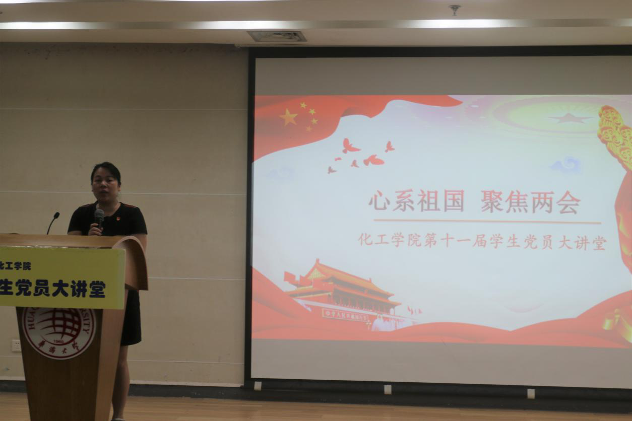 本次学生党员大讲堂以“心系祖国,聚焦两会”为主题,旨在从学生党员的视角向学院师生介绍和宣传党的政策方针。六个学生党支部分别选取了两会中不同的关键词作为主题,用自己的独特方式展现他们的学习所得。生物工程党支部着眼于“一带一路”和中巴关系发展,以小品形式展现了当代中国家庭对中美贸易战的不同看法,体现中国外交崇尚合作共赢的坚定立场。其余四个党支部也分别就我国医疗改革和社会保障体系现状、美国仲裁中兴事件、环境污染严重问题与党员的政治意识这四个方面,利用不同方式向大家展示自己的感想。